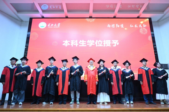 随后举行医学部2025届毕业生学位授予仪式。毛精华教授,龚权教授,梅京松教授,孙亚凌教授,谭小平教授、陈晓光教授等为毕业生们正冠拨穗、颁发学位证书。