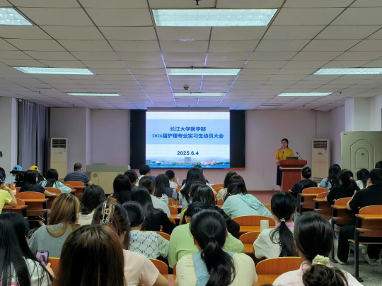 (通讯员 杨紫涵)为明确实习目标与安排,强化职业素养与安全意识,鼓舞士气,助力同学们以积极、安全的状态投入实习,6月4日晚,医学部在14教南410室召开2026届护理学专业实习生动员大会。医学部党委委员,工会主席王超出席会议,学生事务办主任黄柏青、教学办实习管理负责人程松、2026届全体护理学专业学生参加了会议。会议由护理系主任龚爱萍主持。