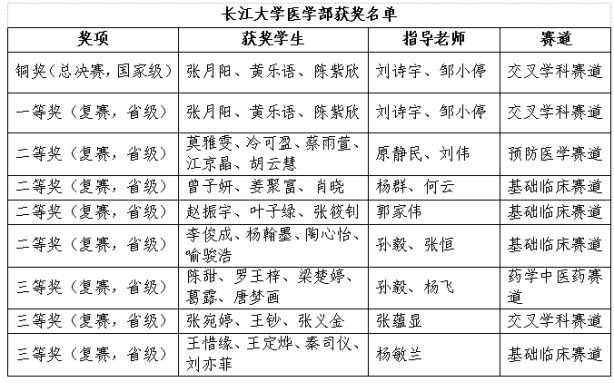此前,第十一届全国大学生医学创新大赛暨 “一带一路” 国际竞赛中南赛区复赛圆满落幕。作为全国医学领域极具影响力的赛事,本届医创赛复赛分多个赛道在不同高校举办。长江大学医学部组织多支团队参赛,凭借扎实的科研基础、创新的研究思路和出色的现场表现,在交叉学科赛道、预防医学赛道、基础临床赛道及药学中医药赛道中斩获一等奖1项、二等奖 4 项、三等奖 3 项,充分展现了我校医学学子的科研创新能力与实践素养。