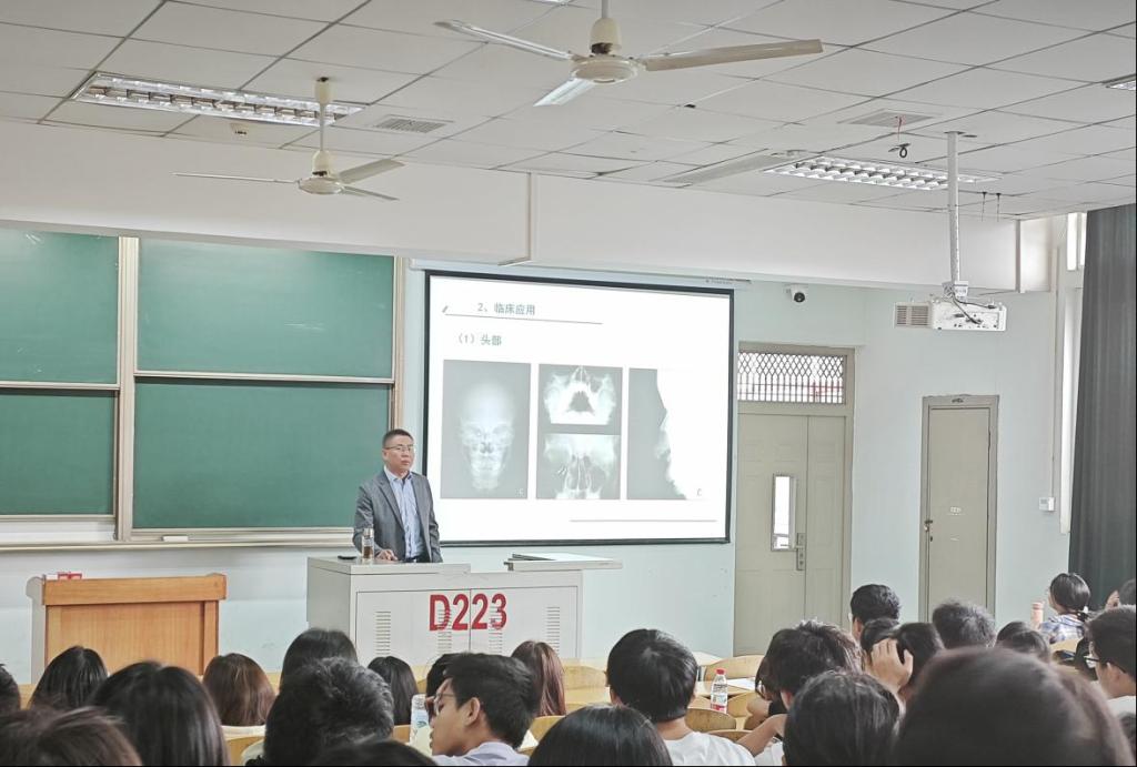 陈晓光教授向同学们介绍了影像技术专业的历史沿革、专业特点、发展前景,让同学们对本专业有了立体的认识与了解。陈晓光教授结合影像技术专业毕业生的毕业就业、考研情况以及目前影像事业的发展前景与优势,勉励同学们以学习为总抓手,树立学无止境的理念,秉持“尚德勤谨,仁术长新”的专业信仰。最后,陈晓光教授希望同学们在专业上要自信、学习上要自觉、生活上要自律,祝愿大家的学习时光充实而美好,都能学有所成。