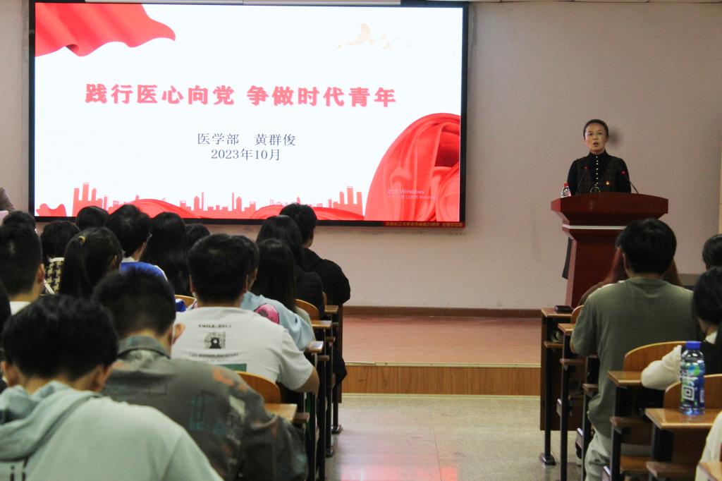 (通讯员:王舒焜 王乾)为切实加强入党积极分子的培养教育,确保发展党员质量,提高入党积极分子的思想政治素质。医学部于2023年10月29日14时召开了主题为“践行医心向党 争做时代青年”的入党积极分子培训报告会暨书记讲党课,主讲人为医学部党委书记黄群俊,2023年下半年新确定的入党积极分子参加报告会。