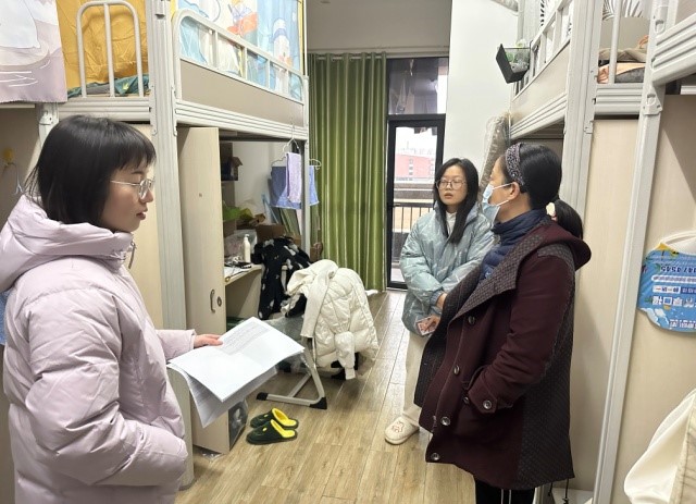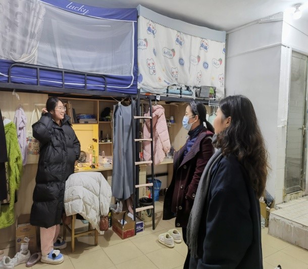 为了提高同学们的安全意识,排查寝室安全隐患,了解同学们的宿舍生活状态,促进对学生的日常管理,为大家创建一个良好的学习生活休息的环境。12月17日和12月21日下午,医学部党委书记黄群俊、党委副书记张渊带领全体辅导员对医学部学生宿舍进行全面安全文明卫生大检查,医学部各班班主任也利用周末晚点名等时间段对各自班级的学生宿舍进行了走访检查。本次检查重点是宿舍安全、文明礼仪、寝室卫生、楼道消防、违规电器、甩线飞线、设备缺损等情况。