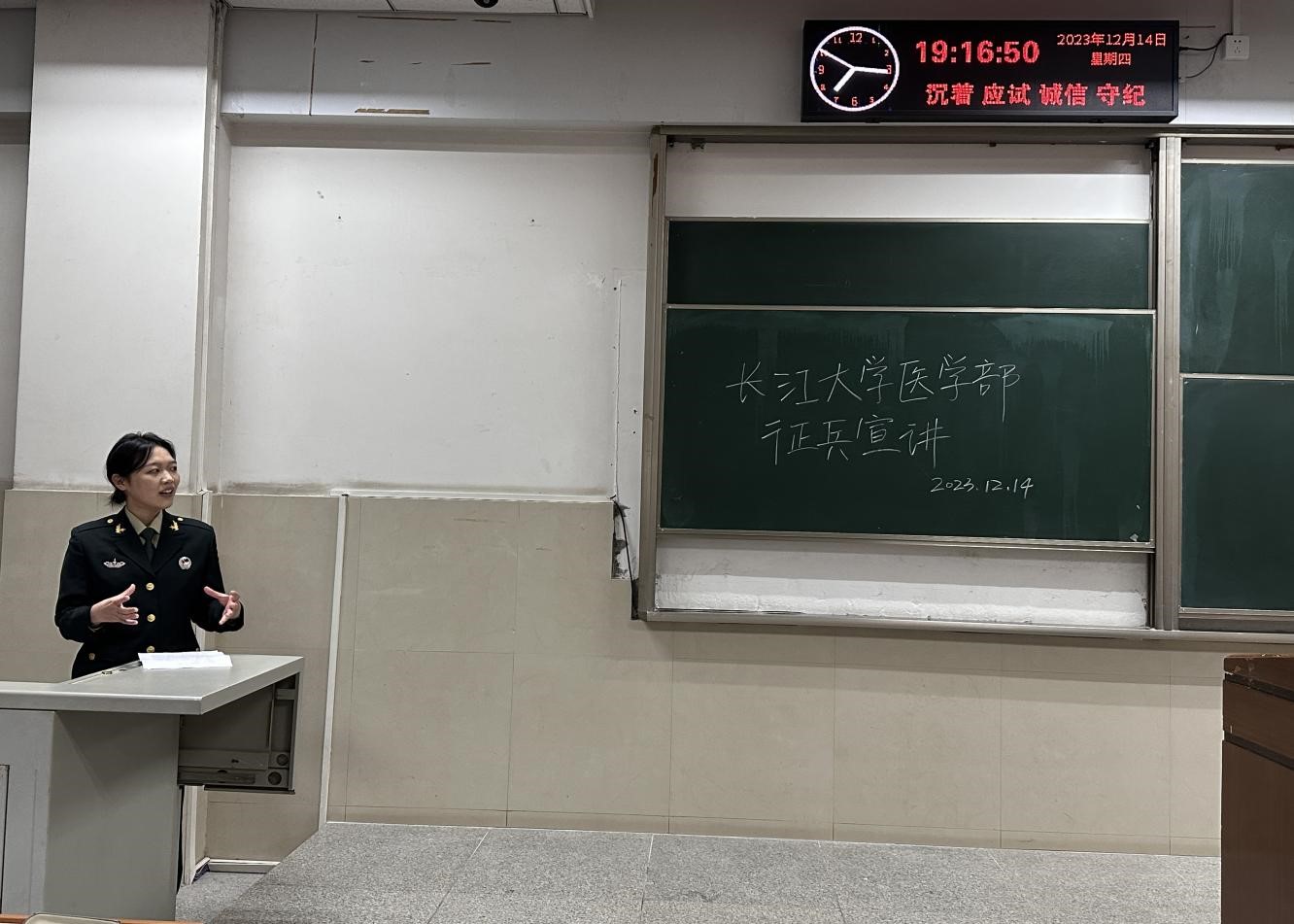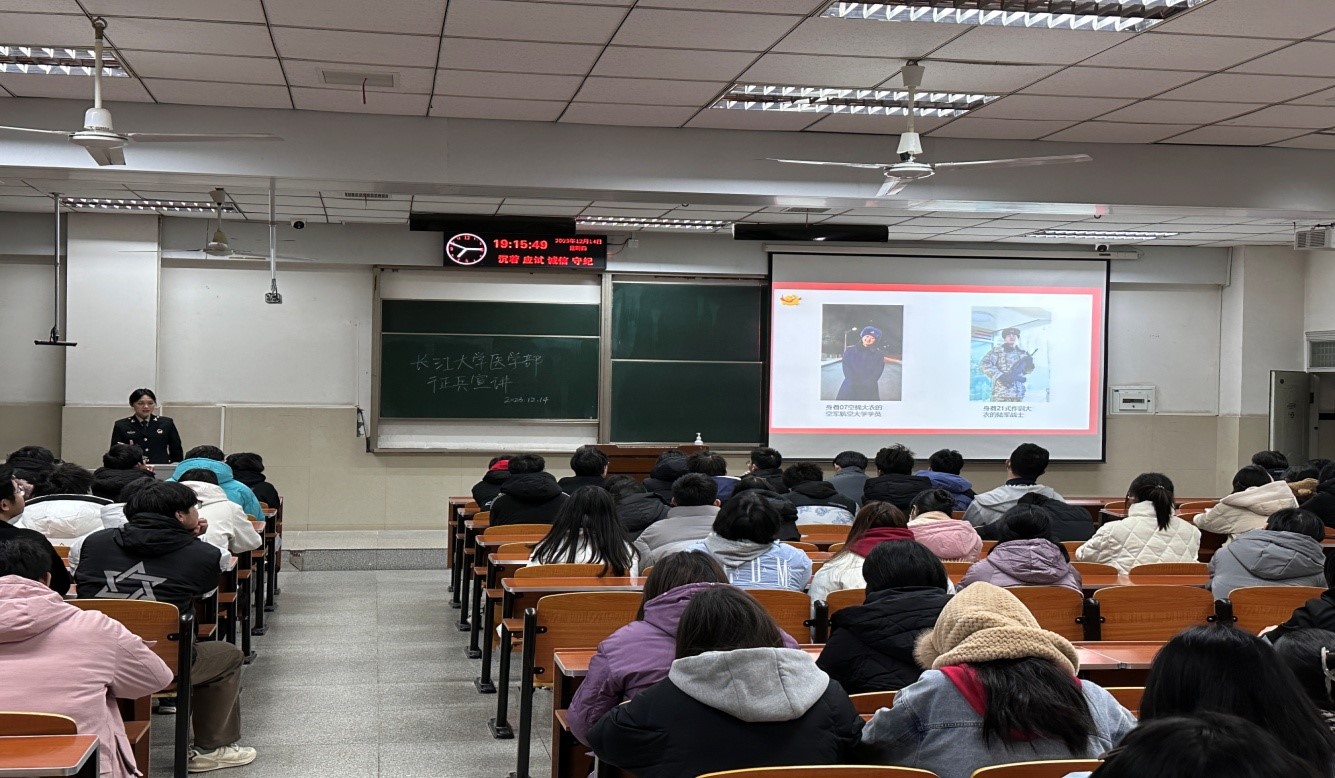 为加强征兵政策宣传,普及国防知识,强化国防教育,深入做好2023年度大学生征兵工作,医学部于12月14日晚7时在12教201举行了2023年征兵宣讲会,120多名本科学生参加。