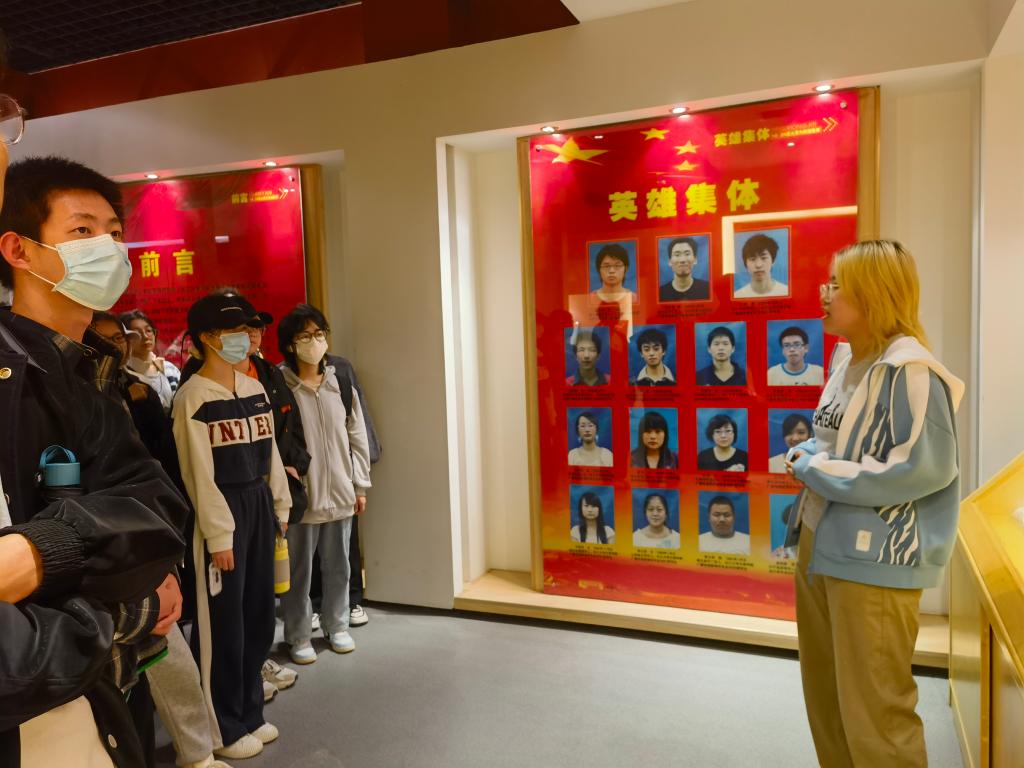 在讲解员的带领下,同学们认真有序地进行了参观学习。讲解员首先介绍了我校杰出校友的事迹,鼓励同学们向榜样看齐,不断拼搏奋进;随后向同学们介绍了“10·24”事件的始末:2009年10月24日,在长江宝塔湾河段,长江大学15名大学生为抢救两名落水少年,手拉手结成“人链”下水救人,最终两名少年获救,而陈及时、何东旭、方招三位同学却不幸被江水吞没,献出了年轻的生命。在讲解员的细致讲解下,同学们加深了对10·24英雄集体的了解,无不为其壮举所感动,怀着敬仰与缅怀的心情表达了对英烈们的无限哀思。