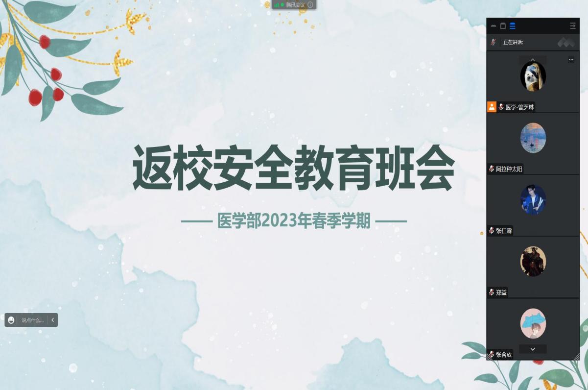 按照长江大学学生工作部的统一安排和部署,在张文君副书记的统一指导下,医学部扎实开展了班主任和辅导员工作会议,全院各年级各班级在2月7日前开展了返校安全教育主题班会、各位辅导员组织开展了医学部各学生宿舍楼层长和寝室长会议,组织同学们专题学习了《新型冠状病毒感染疫情防控操作指南》。