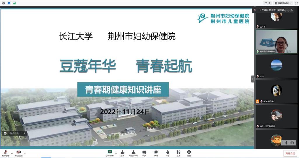 (通讯员 王雅凡 曾芝琳)为增强我部女生自我呵护和自我关爱的意识,2022年11月24日下午,医学部诚邀荆州市妇幼保健院妇保科副主任医师郭研,于线上为我校女生做青春期女性健康讲座。此次讲座由辅导员王喆主持,辅导员曾芝琳以及医学部全体22级女生参与。