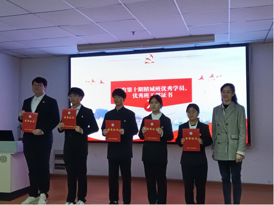 校团委社团部、社会实践部部长杜岳青老师为第十期精诚班优秀班干部、优秀学员颁发荣誉证书,医学部党委副书记张渊老师为第十一期精诚班学生辅导员颁发聘书。