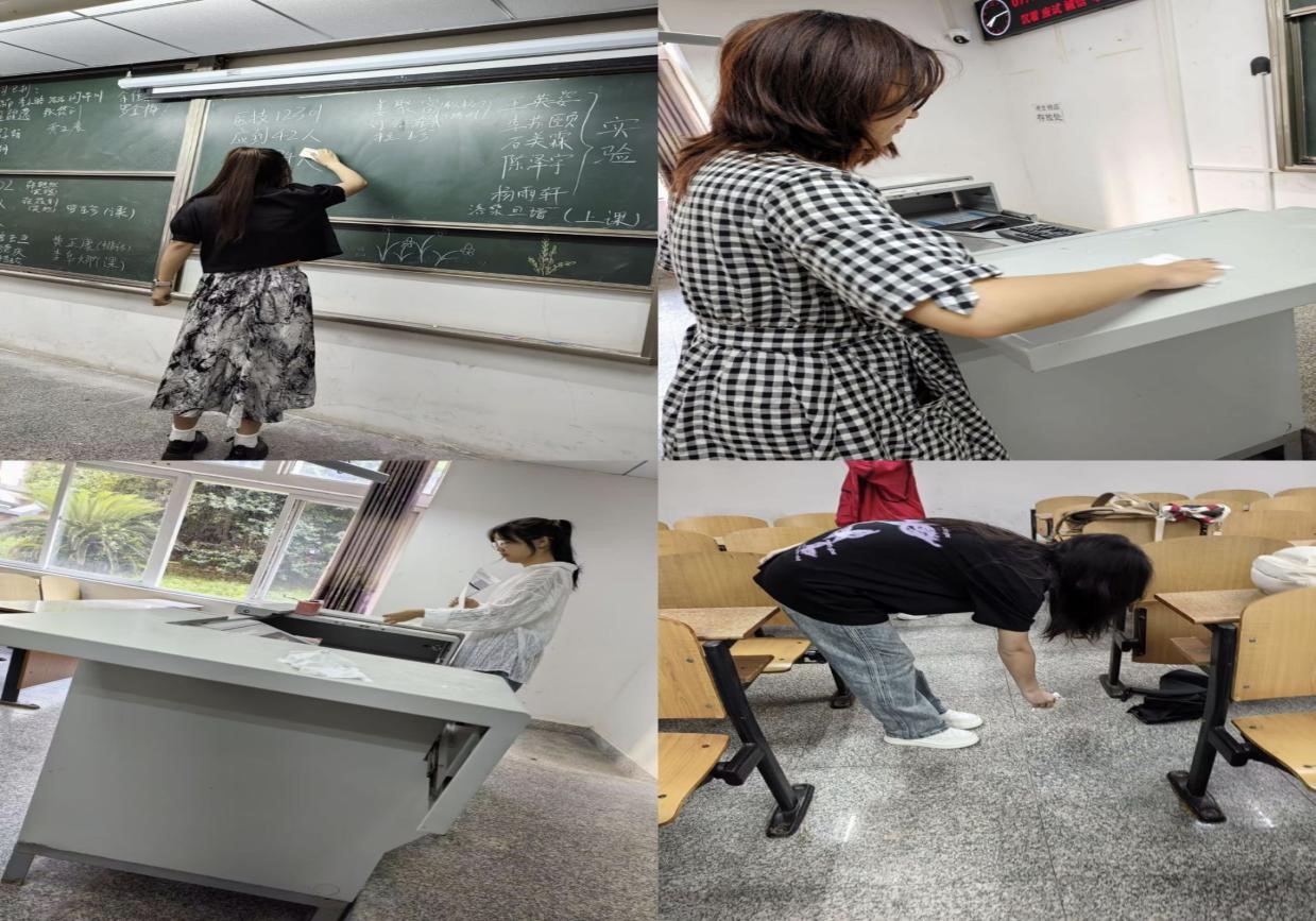 此外,医学部青年志愿者实践队还轮流负责教室黑板及讲桌的清理工作,用实际行动做公益活动的践行者、友爱文明的传播者。