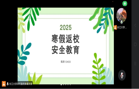 (通讯员 黄柏青)为确保医学部2025年春季学期开学和学生返校工作平稳有序开展,按照长江大学党委学生工作部和党委研究生工作部部署和要求,医学部先后于2025年2月10日、11日召开了辅导员开学专项学工例会和班主任工作会议。张渊副书记部署指导了开学各项工作,并对安全提醒、教育管理、重点难点问题进行了解读和强调。医学部各年级辅导员、各位班主任逐一以腾讯会议形式,召开了各自年级班级的开学前主题班会。班会中,明确了各项返校须知,包含开学时间,提前返校和延迟返校的审批与管理程序。重点强调了旅途及返校前后安全管理、谨防诈骗、新学年学业规划及课程管理、毕业班级考研及就业跟踪管理服务等事项。各位辅导员和班主任还将在开学前后深入学生宿舍指导宿舍建设,重点关注“六类学生”,有针对性开展思想解惑、心理解压、学习解困、生活解难和考研复试指导工作。