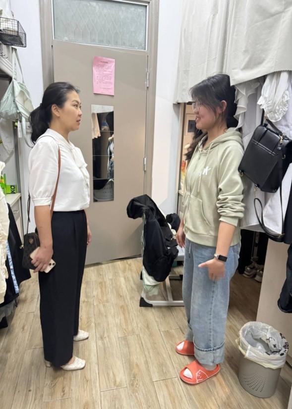 临近五一假期,宿舍安全成为此次走访的重点关注内容。领导们仔细检查了宿舍内的用电设施、查看是否存在私拉电线、使用违规电器等情况,并向同学们反复强调假期安全注意事项。“离开宿舍时一定要关闭电源,锁好门窗,不要给陌生人开门,遇到任何问题及时与辅导员联系。” 张渊副书记反复给同学们强调和嘱咐安全事宜。同时,针对五一期间的出行安全,领导们提醒同学们合理规划行程,注意交通安全、人身财产安全,尽量结伴而行,警惕各类诈骗,确保度过一个平安、愉快的假期。