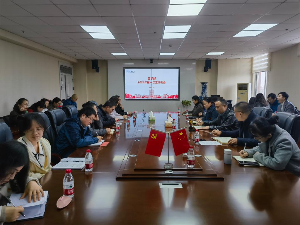 3月14日下午,医学部于14教东502召开2024年第一次工作例会,会议由常务副部长龚权主持,学部全体科级及以上管理干部;系(中心)主任、副主任,支部书记、副书记参与此次会议。
