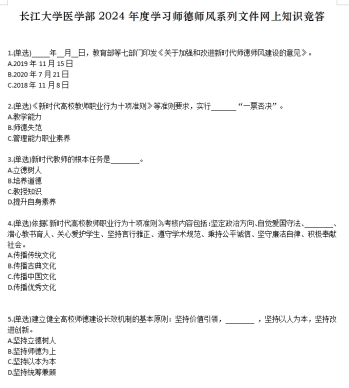 为检验师德师风系列文件学习效果,学部举办“学习师德师风系列文件网上知识竞答”活动。通过学习和竞答,使教师深刻认识师德师风建设的重要性和紧迫性,充分认识抓好师德师风建设的重大意义,充分了解师德师风建设面临的任务挑战,深刻认识教师职业承担的责任和使命,做到人人应知应做、必知必做。