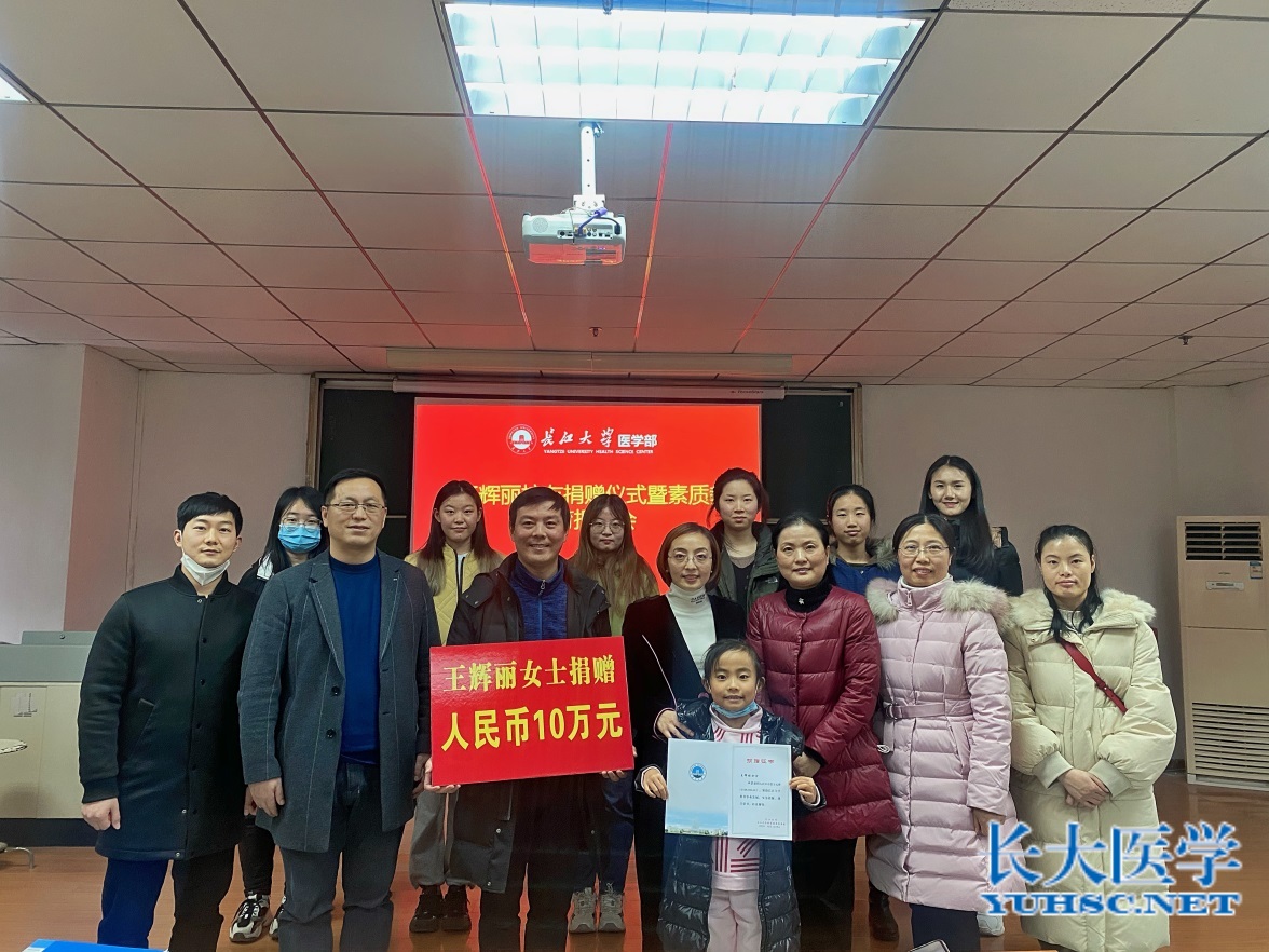 捐赠仪式上,孙启军处长为优秀校友回归母校致欢迎辞,王辉丽校友向母校长江大学捐赠10万元用于母校医学教育发展建设,医学部常务副部长龚权代表学校接受赠与,医学部党委书记关辉为王辉丽女士颁发捐赠证书。