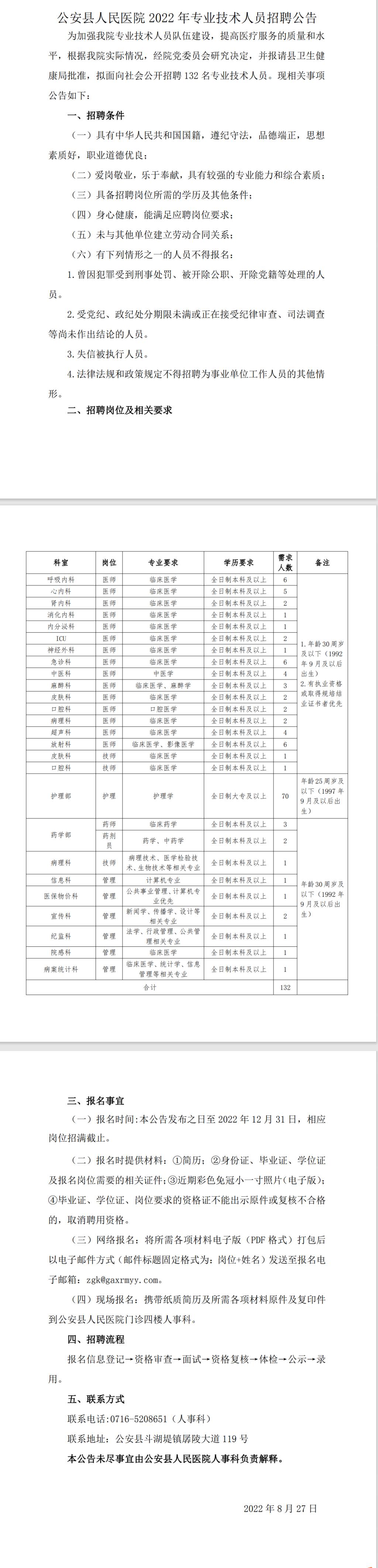 2023届毕业生招聘信息(三)公安县人民医院
