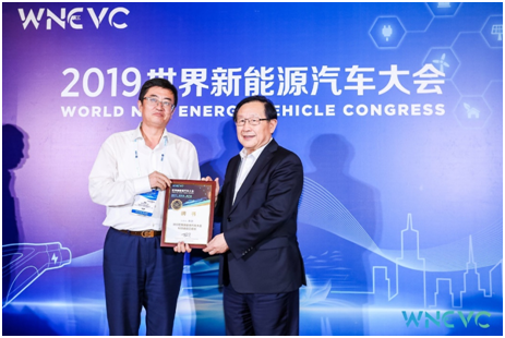 给蔡蔚颁发“世界新能源汽车大会”技术委员会委员证书