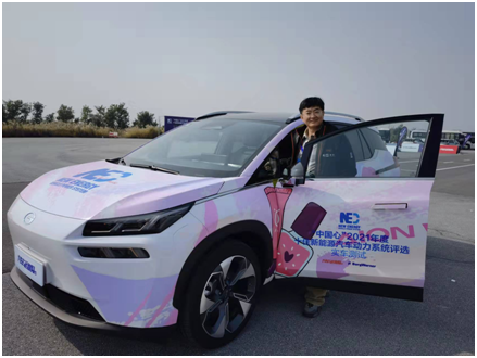 2021年10月24日,蔡蔚在天津试车场测评新能源汽车电驱动系统