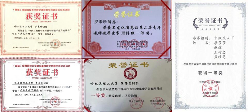 团队教师还在全国高校数学微课程教学设计竞赛中获全国一等奖1项,东北赛区一等奖2项、二等奖4项、三等奖3项。