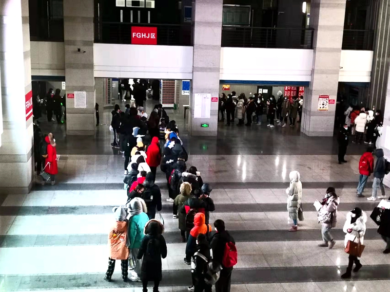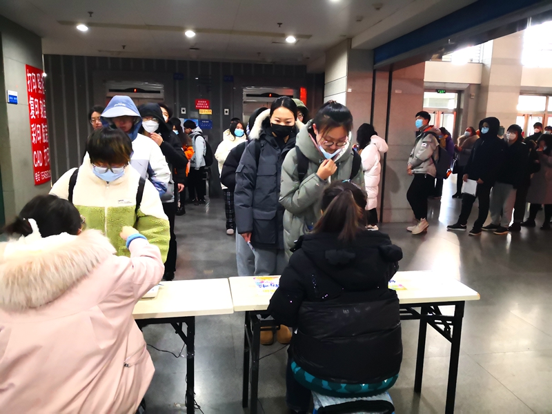 考试期间,按照学校疫情防控相关规定,3000多名校外考生要首先履行进校审批手续,同时履行进入考场核验手续。保卫处工作人员和研究生志愿者在零下二十多度的东、西校门维持入校秩序,查验准考证、身份证、核酸检测报告、健康码和大数据行程卡等资料信息。学生处工作人员组织考生有序进入考区,使用人证一体机核验考生的准考证和身份证,并对考生进行体温监测,考生入场环节井然有序。后勤管理服务中心全力保证各考区的防疫消杀与卫生保洁。