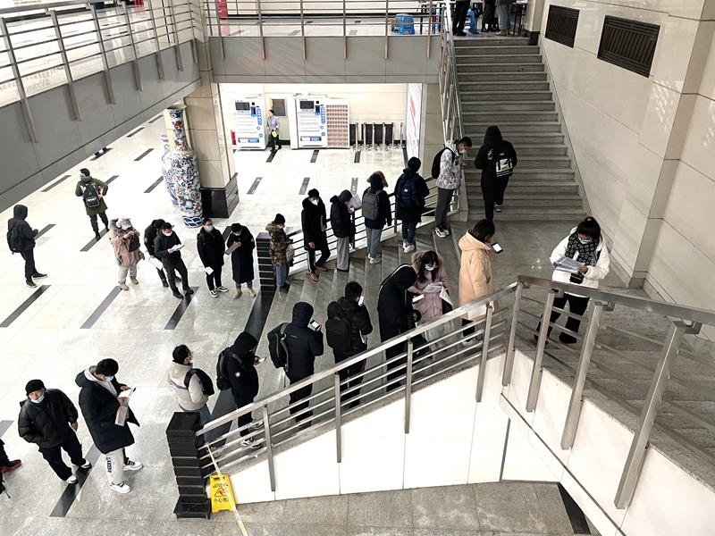 2022年全国硕士研究生招生考试(初试)哈尔滨理工大学考点于12月25日、26日举行。今年我校考点考生人数5576人,较去年有大幅增加,学校首次设置西区新教学主楼和一号教学楼两个考区,共201个考场。本次考试征集考务工作人员、巡考、监考教师、备用监考、医护人员等520余人,征集研究生志愿者60余人。