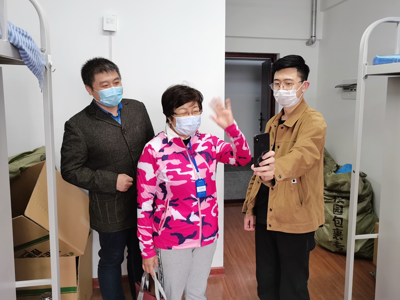 6月1日上午,校党委副书记陆岩带领学生处处长杨忠学、副处长蔡野,研究生部副主任张辉等相关部门负责人,分别到学校西区本科实训楼、学生八公寓、学生三公寓等处检查指导学校近日开展的2020届毕业研究生个人物品邮寄工作,同时看望慰问奋战在邮寄工作一线的教职员工,并与学生视频连线送去学校的关怀与祝福。