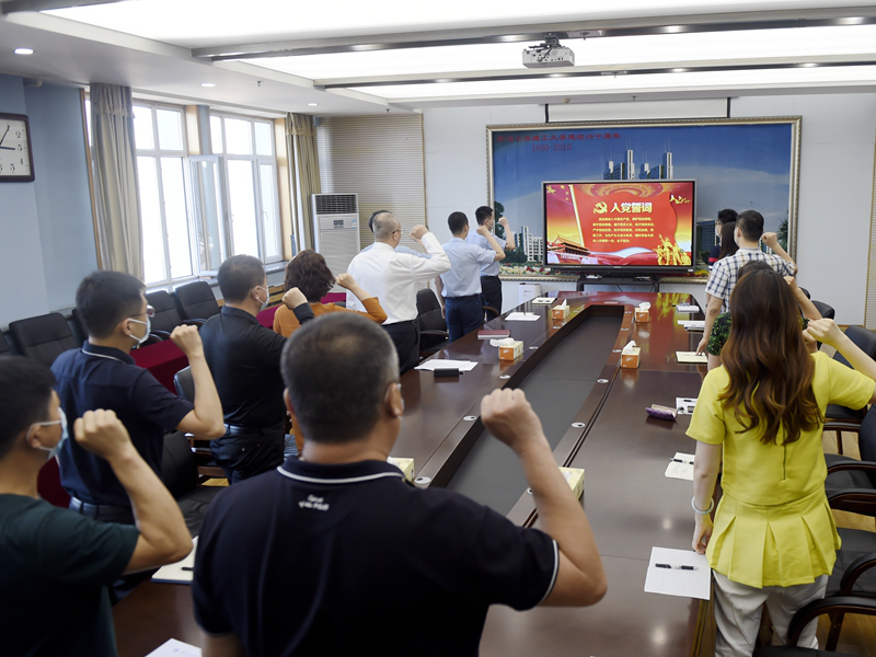 党课开始前,支部全体党员面向党旗,高举右拳庄严宣誓,以铿锵坚定的语气、整齐宏亮的声音重温入党誓词,向中国共产党建党99周年献礼。