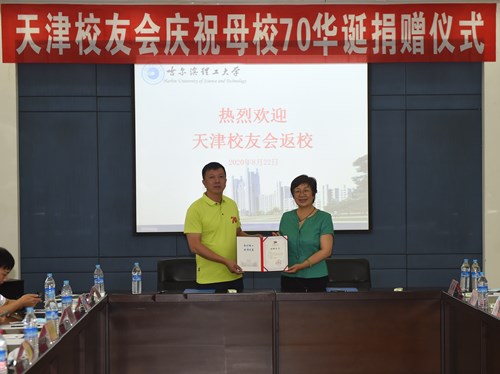 在学校即将迎来庆祝建校70周年之际,天津校友会为母校70华诞献礼,向母校捐赠了人民币50万元用于支持庆祝建校70周年活动及学校发展建设。8月22日下午,校友总会在西区1号楼第四会议室举办了捐赠仪式,校党委副书记陆岩出席了仪式,校友总会、教育发展基金会相关人员,校庆办相关人员,相关院系领导及教师参加了仪式,天津校友会副会长涂强、吴宝强,秘书长周展缨,常务副秘书长王雷、郑风振,副秘书长吴景颖,理事郎家军、邢如玉、谢福金,校友邓禹等代表天津校友会返校捐赠。仪式由学校校友总会秘书长、教育发展基金会理事长王俊明主持。