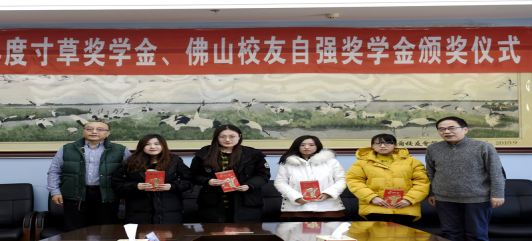 刘胜辉副校长与刘博力校友为学生颁发“寸草”奖学金