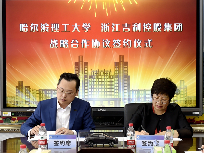 金秋九月,桃李沁香。为庆祝第36个教师节,同时迎接即将到来的哈尔滨理工大学70周年校庆,9月10日上午,浙江吉利控股集团有限公司代表团走进哈尔滨理工大学,与我校签署“校企战略合作框架协议”。吉利控股集团公关传播部部长宋兆桓、浙江吉利动力总成有限公司总经理羊奎、吉利汽车工程学院副院长石军平、吉利控股集团人才经营中心校园招聘东北区负责人刘嘉琪出席签约仪式。我校校长赵琳、校党委副书记陆岩、机械动力工程学院院长刘献礼、教务处处长宋清昆等出席签约仪式,学校办公室副主任付尧、招生与就业工作处王珊参会。签约仪式由校长赵琳主持。