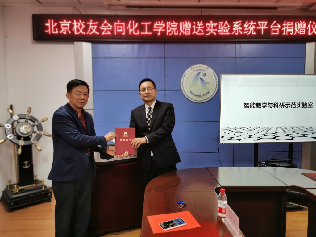上午,北京校友会&哈尔滨理工大学化工学院教学系统平台捐赠仪式在南区化工学院举行。仪式上,北京校友会向化工学院捐赠价值54.6万元的教学系统平台用于建设“智能教学与科研示范实验室”。