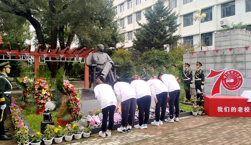 9月19日,是哈尔滨理工大学建校70周年纪念日,在系列庆祝活动开始前,学校举行向王大珩先生铜像献花和先生题词浮雕揭幕仪式。
