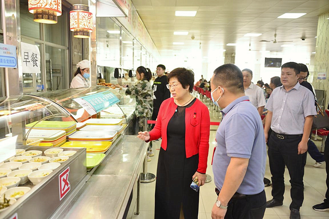 座谈会后,在常务副院长杜野等陪同下,陆岩副书记实地查看了学生学习生活场所,现场询问了疫情防控相关工作流程。在歌尔数据中心,陆岩副书记与正在创意交流的同学们亲切交谈,勉励青年学子秉承勤奋刻苦、敢于创新的精神,不断突破自己,为国家的科技发展和社会进步贡献自己的积极力量;在学生公寓自习室,她与正在准备考研的大四学生亲切交谈,现场询问了学生疫情防控感受、个人防护举措,并祝愿同学努力学习、直面挑战,发扬理工精神,实现理想抱负,成为祖国栋梁;在保卫监控中心,陆岩副书记查看学院全覆盖无死角的校园监控平台,要求工作人员谨记安全意识,发现特殊情况立时汇报、快速处置;在学生第二食堂,陆岩副书记对“小份菜”样式以及倡导学生勤拿少取不浪费的做法提出表扬。