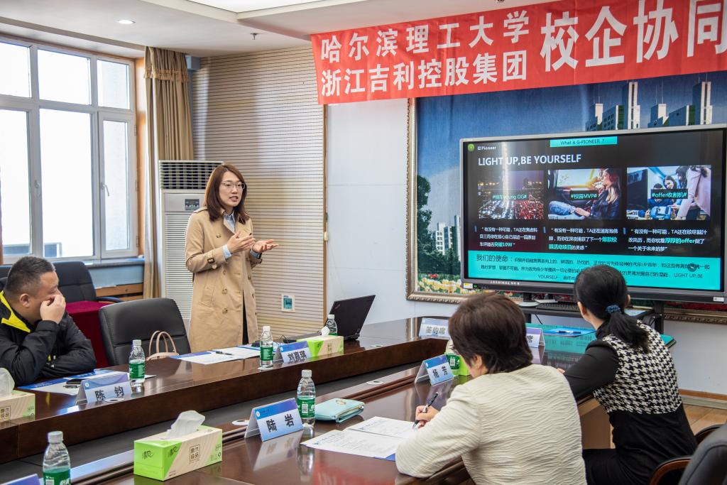 为全面落实今年9月哈尔滨理工大学与浙江吉利控股集团有限公司签署的校企战略合作协议内容,深化校企合作,促进产教融合,实现资源共享,10月7日上午,在教学主楼第二会议室举行了学校与浙江吉利控股集团校企协同育人启动仪式。吉利动力制造春晓变速器厂总监秦亮,吉利动力制造HRBP经理陈钧,吉利控股集团人才经营中心校园招聘东北区负责人刘嘉琪,吉利控股集团人才经营中心雇主品牌专员耿红旺出席启动仪式。我校校长赵琳,校党委副书记陆岩,招生与就业工作处处长王俊明,校办副主任付尧,机械动力工程学院党委副书记杨芳,招生与就业工作处王珊及部分学生代表出席仪式。仪式由党委副书记陆岩主持。