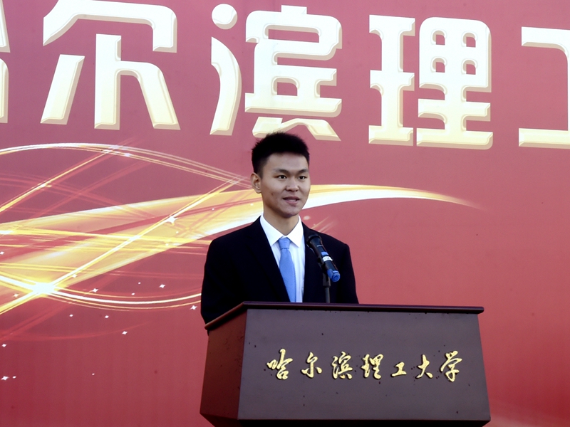 电气学院迟庆国教授代表全体教师发言。他代表全校专任教师向同学们表示最衷心的祝贺和最热烈的欢迎,欢迎同学们加入哈理工这个温暖的大家庭,开启人生新的篇章。他建议同学们要准确定位,顺利衔接,尽快调整学习方法,以成人的自律,自主学习,尽快完成从“要我学”到“我要学”的转变;要亦德亦能、求真务实,要明辨是非、恪守正道,把学习当成自己一生的事业,把课堂当成运动员拼搏的赛场,把图书馆当成通向知识殿堂的桥梁;要志存高远,脚踏实地,将个人与国家的命运紧紧联系在一起,将个人的奋斗目标融入到推动国家经济社会发展和实现中华民族伟大复兴的中国梦中去,用自己的专业知识和技能为国家和社会做出贡献。