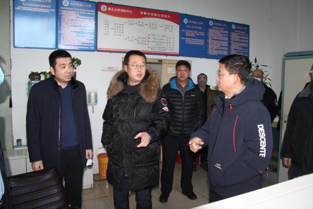为贯彻落实省教育厅《全省教育系统今冬明春火灾防控工作方案》文件精神,进一步加强校园疫情防控工作,确保寒假期间学校安全稳定,1月5日下午,副校长房文斌在保卫处、后勤管理服务中心、国有资产管理处和国家大学科技园管理办公室等相关职能部门主要负责人的陪同下,对学校变电所、水源地(消防泵房)、锅炉房、理工大厦、北区工厂等消防安全重点单位进行了安全检查,并对校门管理进行了检查指导,对值守在一线岗位的同志表示慰问。