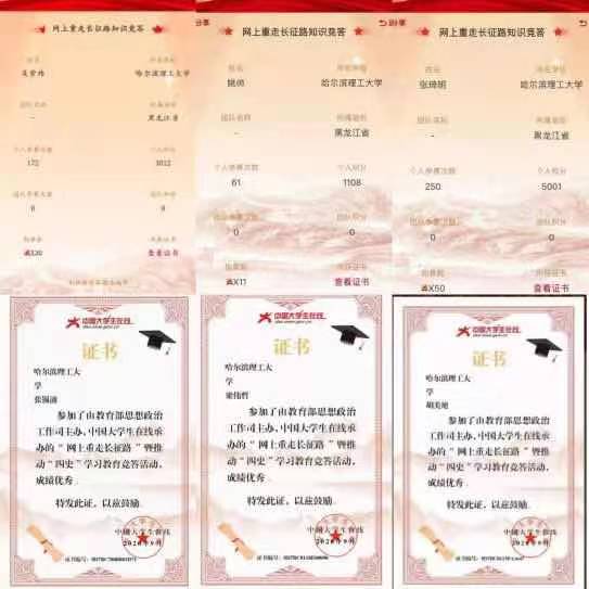 建筑工程学院利用“龙江高校网络思政中心”官方微博居家观看“四史学习教育·微领学”网络直播课;组织学生在“中国大学生在线”线上进行四史教育答题活动,答题活动采取对垒赛、打擂赛等多种形式,通过回答单选题、多选题、文字题、图片题、视频题,进行积分累计。个人积分每到100分,即可以得到一个勋章,勋章无数量限制,得到五星勋章即可获得由中国大学生在线颁发的电子证书。组织学生开展“读四史、学经典,品书香、爱中华”主题阅读活动,增进了学生对“四史”的认识和掌握。