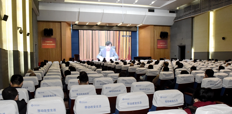 本次动员会议以视频形式召开。按照省教育厅要求,我校在教学主楼5楼报告厅设立视频直播分会场,全体校领导、校长助理,正、副处级党员领导干部参加会议。