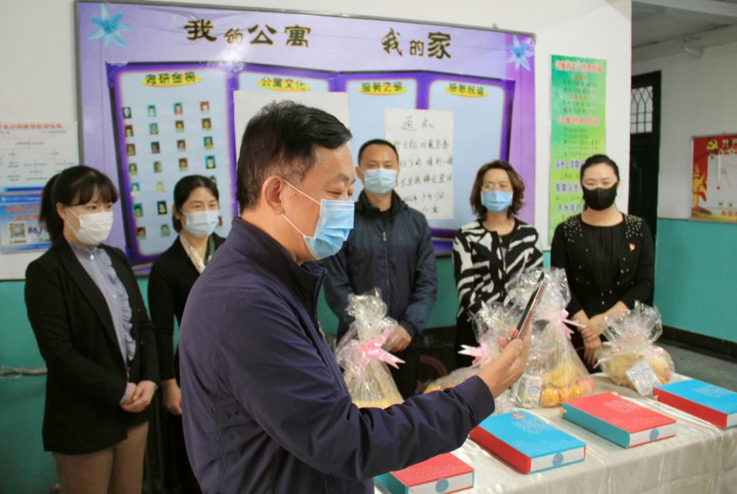 郭二军一行分别来到西区校医院、西区二公寓、南区一公寓三个校内“居家健康监测”隔离点,向工作人员详细了解健康监测学生的居住条件和身心情况,并慰问健康监测学生代表。郭二军亲切询问学生代表在健康监测期是否存在学业、生活上的困难,叮嘱学生在监测期要安心生活和学习,学校会采取线上授课+课外辅导的方式为学生们补课,解决学生的后顾之忧。郭二军还与正在“居家健康监测”的学生进行视频连线,向学生送上节日的问候。