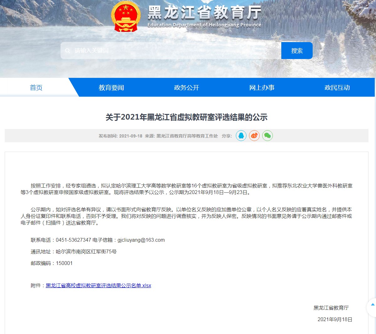 近日,省教育厅公布了黑龙江省级虚拟教研室的评审结果,我校理学院赵辉教授作为负责人的“高等数学”虚拟教研室获批,是我校的第一个省级虚拟教研室。