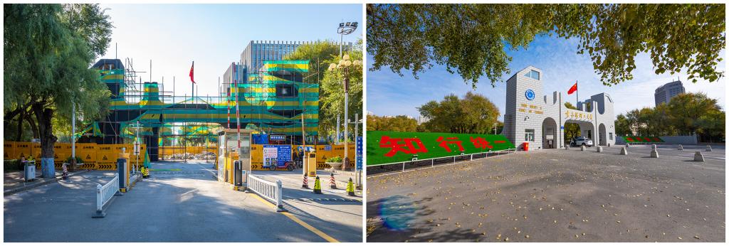 学校正门维修前后对比