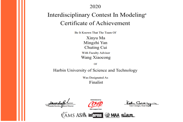 2018年赵辉老师参加第三届全国高校数学课程创新教学研讨会,并做大会发言。数学建模竞赛成绩优异,2020年美赛成绩取得历史性突破。2021年在黑龙江省首届大学数学课程教学创新示范交流活动中分别取得了一等奖、三等奖、优秀组织奖、教学设计创新奖。
