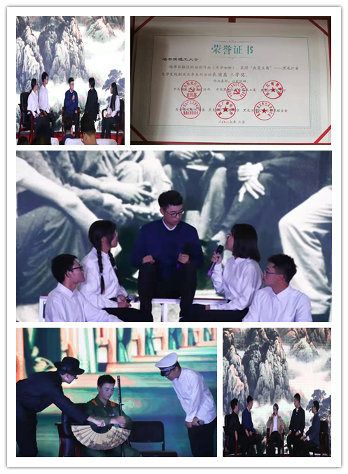 以传承“大珩精神”为引领、构建思想政治教育工作新格局 。 “大珩精神”成就了理学院的红色基因,已经融入到入学教育、毕业生教育、党课、团课、社会实践、就业、实习等环节,实现全过程、全方位育人作用。大珩剧“光华如珩”获得黑龙江省大学生戏剧表演三等奖项。