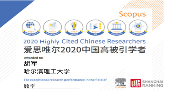 高水平科研人才不断涌现,代表性成果产出加速。2020年,胡军教授入选爱思唯尔(Elsevier)正式发布的“中国高被引学者”榜单,黑龙江省总计只有4位学者入选2020年中国高被引学者榜单“数学学科”。朱智涵老师获评2017年度中国新锐科技卓越影响奖。《空间结构光场量子非线性调控物理及技术研究》获批中央支持地方高校改革发展资金高水平人才项目;青年教师赵波作为第一作者在国际知名学术期刊《Nanophotonics》(中科院一区TOP期刊,影响因子8.449)发表了题为“Parabolic-accelerating vector waves”的研究论文。