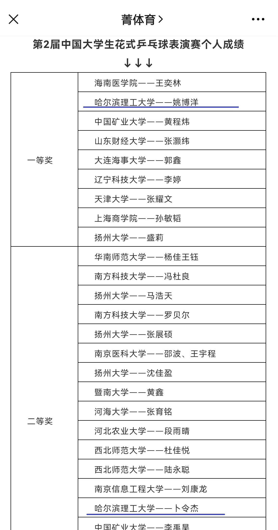 11月中旬,我校乒乓球队参加了由中国大学生体育协会主办的“2021年全国大学生花式乒乓球表演赛”。运动员们在主教练幺兰老师的带领下,刻苦训练、积极备战,最终凭借扎实的基本功,精彩的花式乒乓球表演和独具匠心的创意,在全国35个高校中,脱颖而出,荣获团体一等奖,电气学院姚博洋荣获单项一等奖,自动化学院卜令杰荣获单项二等奖。