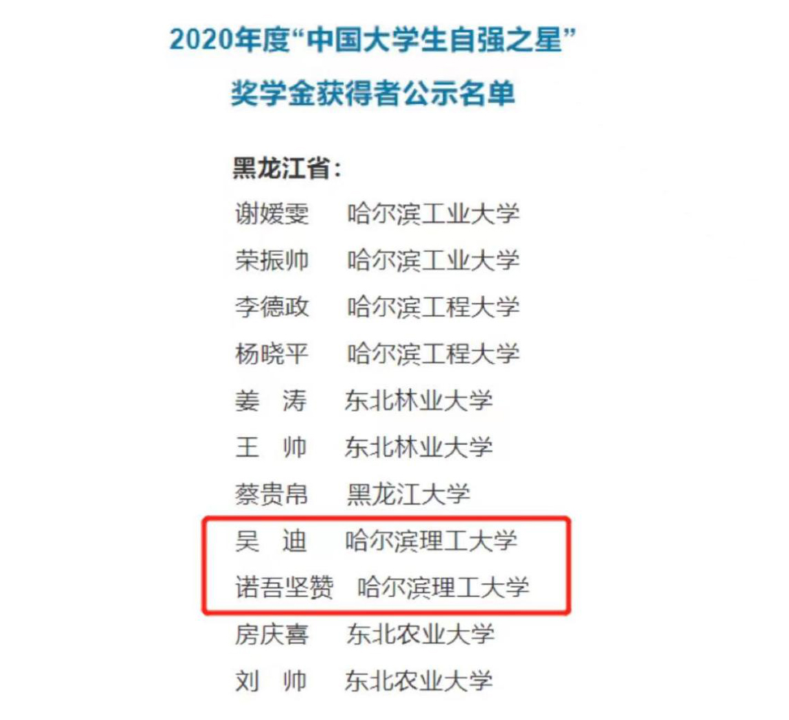 12月9日,由共青团中央、全国学联共同组织开展的2020年度“中国大学生自强之星”评选结果揭晓,我校吴迪、诺吾坚赞两名同学荣获“中国大学生自强之星”称号。