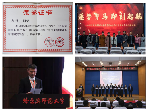 高扬旗帜,构建青马工程三级培育体系。以“理工骄子”为依托,构建“校-院-班”三级培养体系。选送了毕轩、韩陆等8名优秀学生骨干参加黑龙江省“青年马克思主义者培养工程”暨大学生骨干培训班,4名学生成功获评“中国大学生自强之星”荣誉称号、2名学生荣获提名奖。全方位强化团员青年理论学习,做政治素质高、专业能力强、有创新精神的青年马克思主义者。