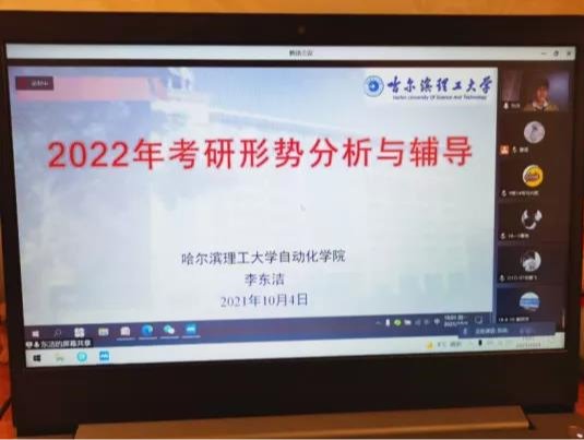 自动化学院团委为切实帮助2018级考研学生应对新冠疫情给复习备考带来的挑战,有的放矢地给予学生专业指导,组织开展线上考研形势分析专题辅导。邀请学院副院长李东洁、自动化学院研究生梁雨、张子磊同学为2018级学生分析考研形势,传授考研经验,悉心助力学生考研复习,缓解目前学生的备考压力。使学生全面了解考研形势,明确自己的报考目标,提高复习质量。