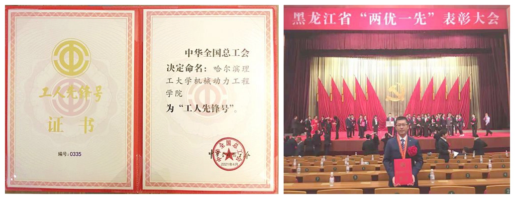 机械学院被评为全国“工人先锋号”,胡军被评为“黑龙江省优秀共产党员”