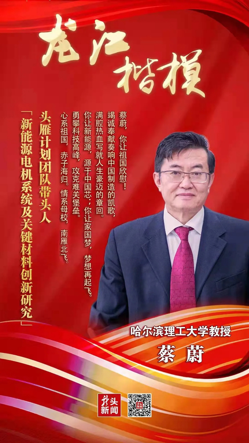 电气与电子工程学院院长刘骥:蔡老师满怀科技报国之志,紧紧围绕国家能源双碳战略转型重大关键问题开展科技攻关,取得了新能源电机领域国际公认的原始创新成果。此次蔡蔚老师荣获“龙江楷模”使我们倍受鼓舞,充分体现了头雁团队“展示风采,凝聚人心,鼓舞干劲,攻坚克难”的正能量,相信“十四五”期间在学校党委的坚强领导下,电气学院将进一步发挥国家级人才的领军优势,着力打造国家一流教学科研平台,培育一批高水平团队,不断产出标志性成果,助力学校双一流建设再上新台阶。