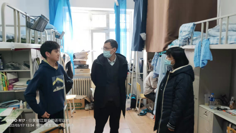 近日,校党委副书记郭加利走访学生工作办公室及学生寝室,慰问坚守一线的学生工作人员。