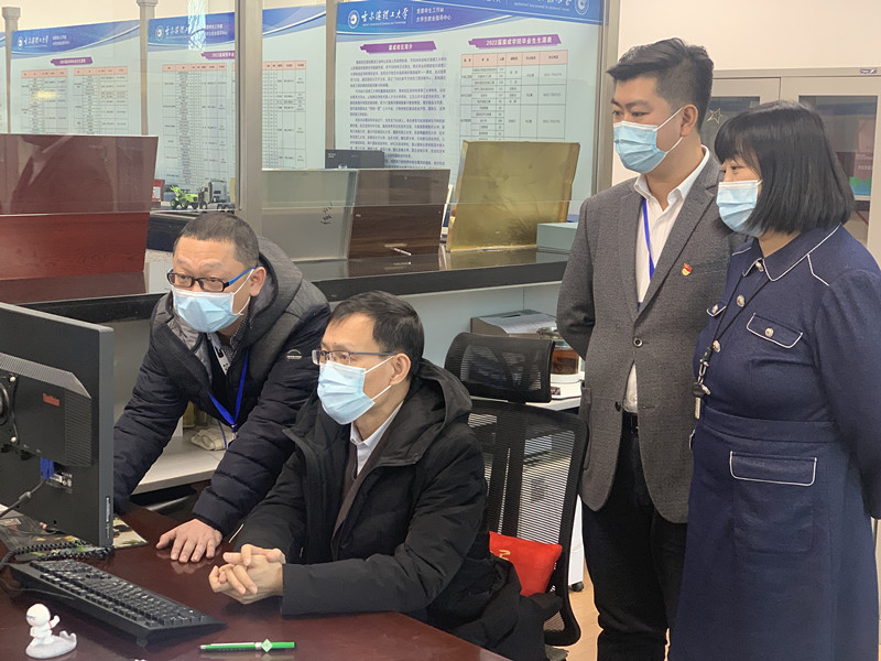 在大学生就业指导中心,郭加利实地检查毕业生春季招聘期间的就业工作开展情况,观看工作人员实地操作“互联网+视频就业”一站式服务平台,认真了解智慧就业网站的各项功能。他强调,要切实落实全省高校毕业生就业工作第一次视频调度会议精神,抓住目前春季招聘的就业黄金期,多措并举促进2022届毕业生就业。面对疫情期间校园线下招聘活动受阻的现状,学工部的同志们要想办法、出新招、多找岗位,以我校成为全省首批高校就业创业服务站试点建设单位为契机,积极开辟省内就业岗位。要充分发挥好智慧就业网站功能,开展线上招聘和就业服务,分类、精准、高效推送就业信息,加强对毕业生的就业观念引导和就业能力指导,确保2022届毕业生更高质量就业。